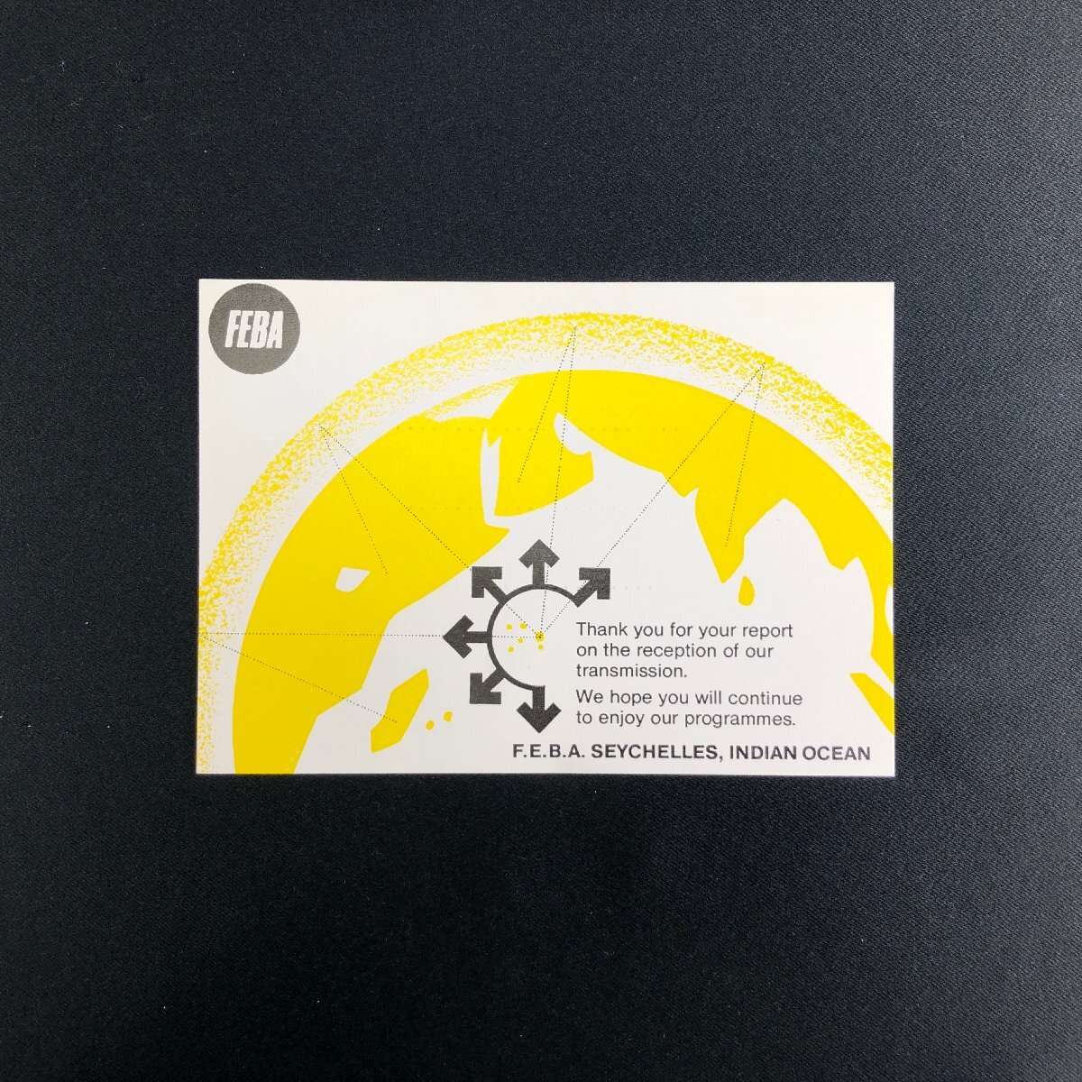 - 希少 ベリカード F.E.B.A SEYCHELLS FEBA インド 1980年代 受信報告証明書 QSL S12-37