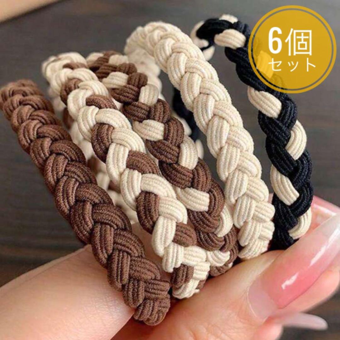 - ◇ワンポイント◇ ヘアゴム 6個セット ベージュ ブラウン 高耐久