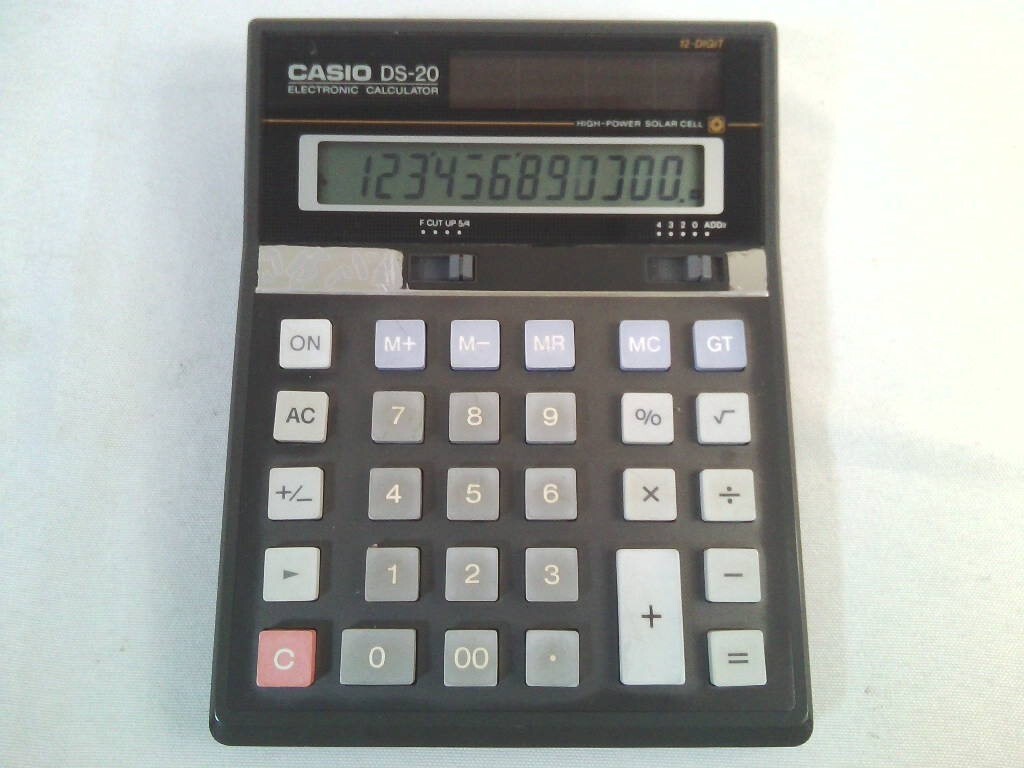 - レトロ★CASIO DS-20 ソーラー 電卓 計算機 12桁 日本製★ 動作品!液晶文字欠け