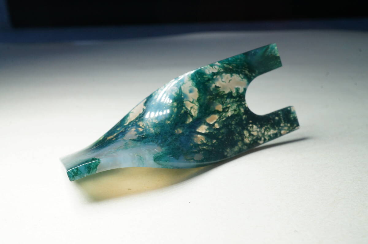 - 希少30年前の未使用在庫!上質モスアゲート瑪瑙・めのう・メノウ彫刻カービングルース色合い模様や彫刻が美しいです!