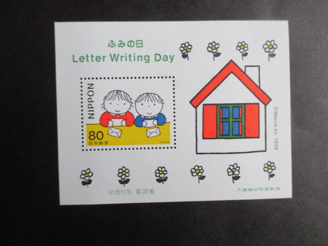 - 6-105 コレクター出品 ふみの日 記念切手★小型シート発売日 平成10年
