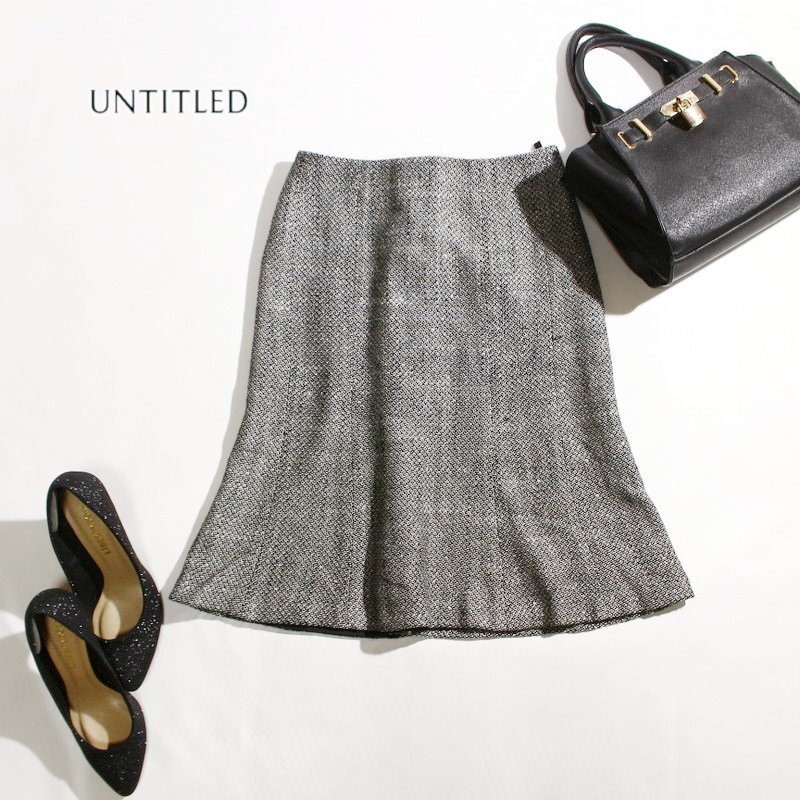 > 美品 アンタイトル UNTITLED 株) ワールド 秋 冬 春 レーヨン コットン ほんのり艶 Aライン ツイードスカート 9号 2 ブラック 黒 ホワイト