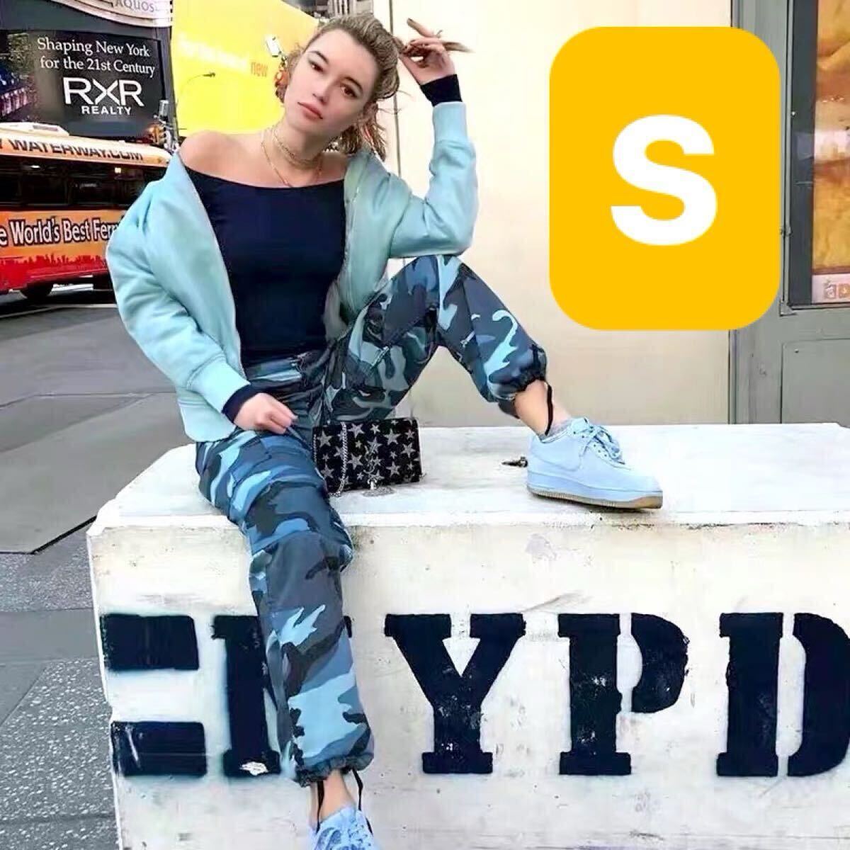 > ワークパンツ 迷彩 ワイドパンツ カーゴパンツ トレンド オルチャン ストリート 渋谷 原宿系 トレンド 人気 ユニセックス ブルー 青 S