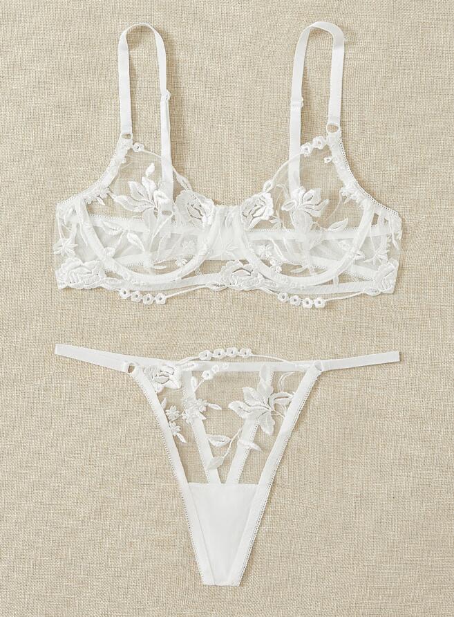 - CD0922 レディースインナーウエア☆大人 sexy ☆ 可愛い 上下セット 刺繍 白