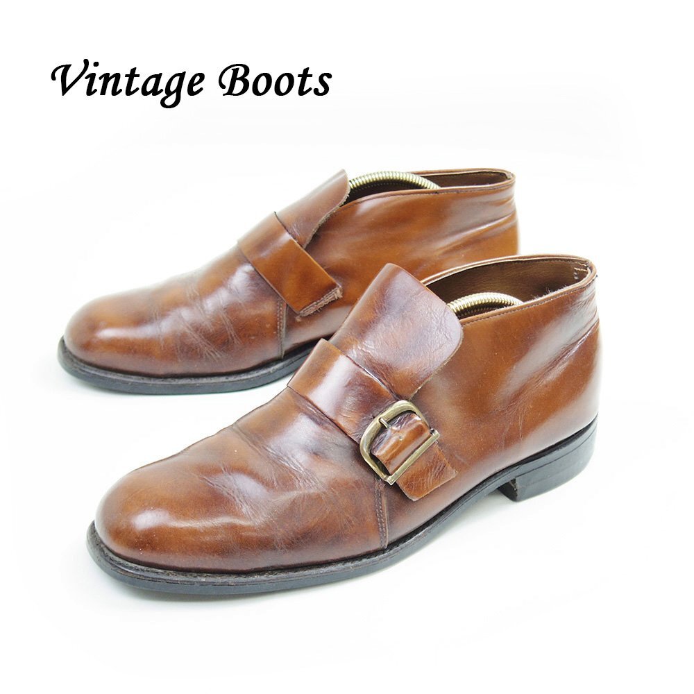 > 28㎝相当 ヴィンテージ エンジニアブーツ ブラウン スチールトゥ レザー ショートブーツ GOOD YEAR製法 /2024.12.20/P2095