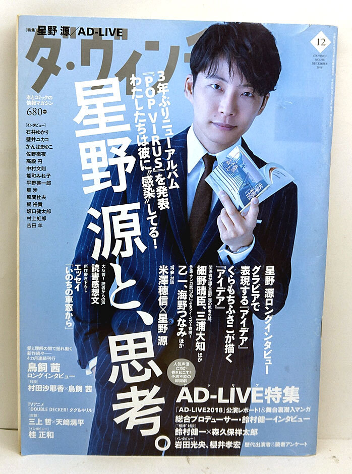 - ◆ダ・ヴィンチ 2018年12月号 No.296 表紙:星野源◆KADOKAWA