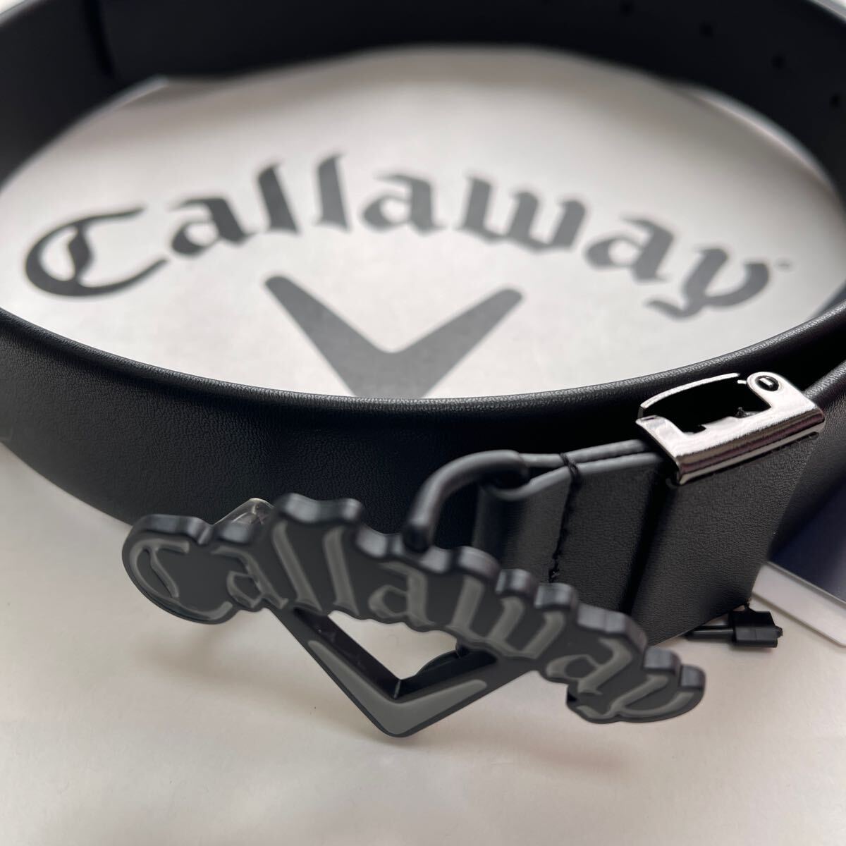 - 送料無料Callaway GOLFキャロウェイリアルCallawayバックル合成皮革ストレッチベルト柔らか品やかSIZE LINEロゴ型押しBlack(大特価)新品