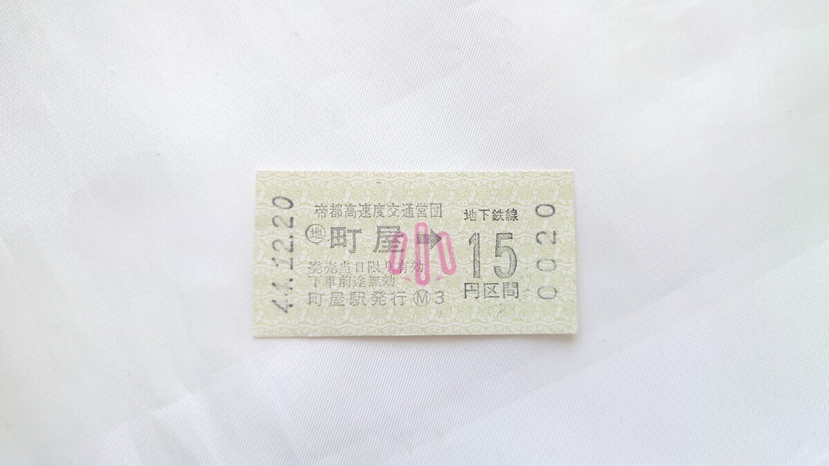 - ▼帝都高速度交通営団・地下鉄千代田線開業初日▼町屋→15円区間小児乗車券▼券売機券昭和44年