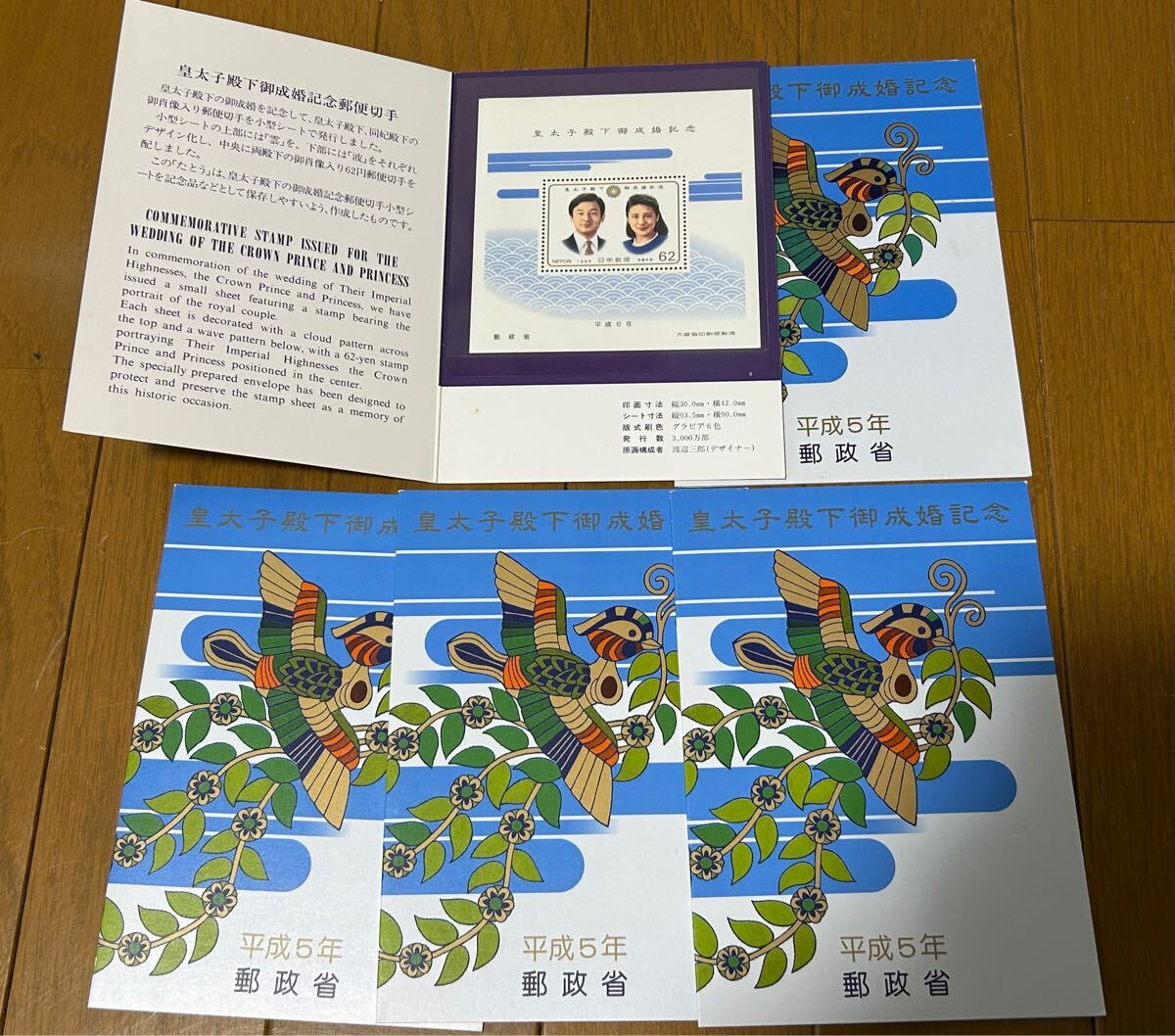 - 郵政省 平成5年 皇太子殿下御成婚記念郵便 5枚 記念切手 保管品