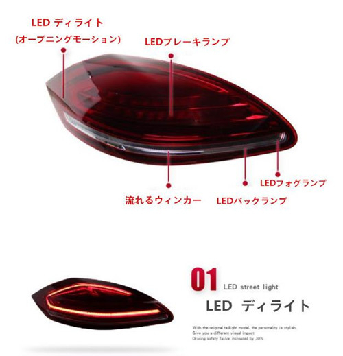 > ポルシェ パナメーラ970 前期 2009-2012 LEDテールライト テールランプ 流れるウインカー 外装カスタム オープニングモーション