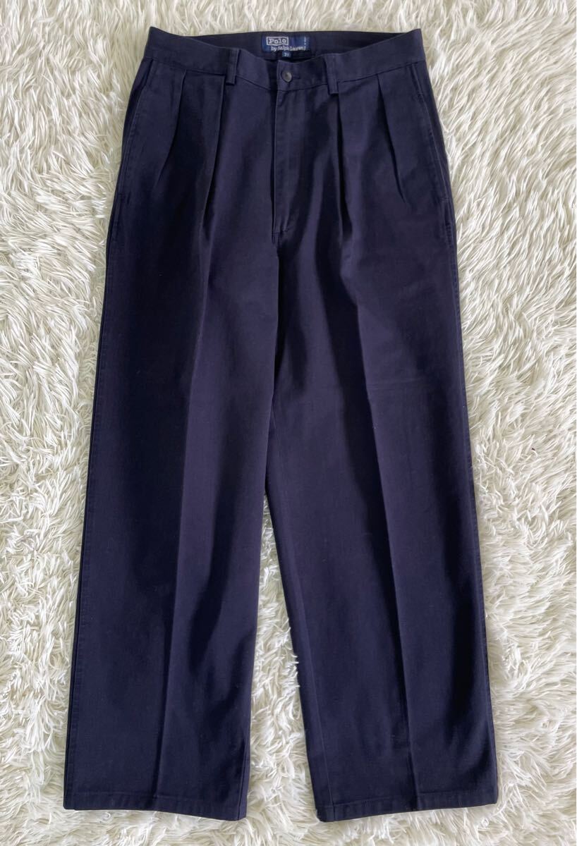 - 美品 90s Polo by Ralph Lauren ラルフローレン ワイドストレート カラージーンズ ボトムス チノパン ネイビー メンズ 31サイズ