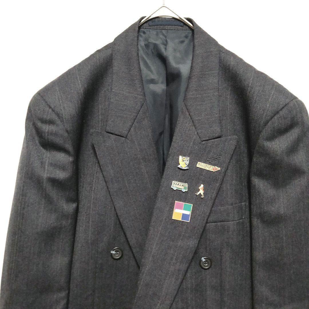 - 【大人気】 ピンバッジ5個 ダブルボタン テーラード ジャケット スーツ ダークグレー メンズ 古着