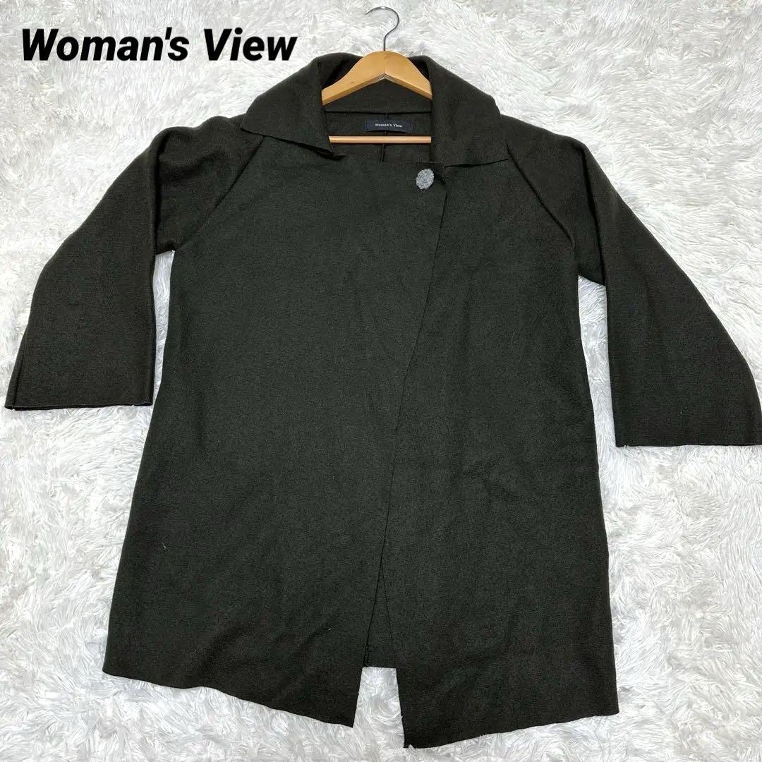 - 650【Woman's View】/コート/羽織り/オリーブグリーン系/ウール60%/古着/アウター/レディース/女性