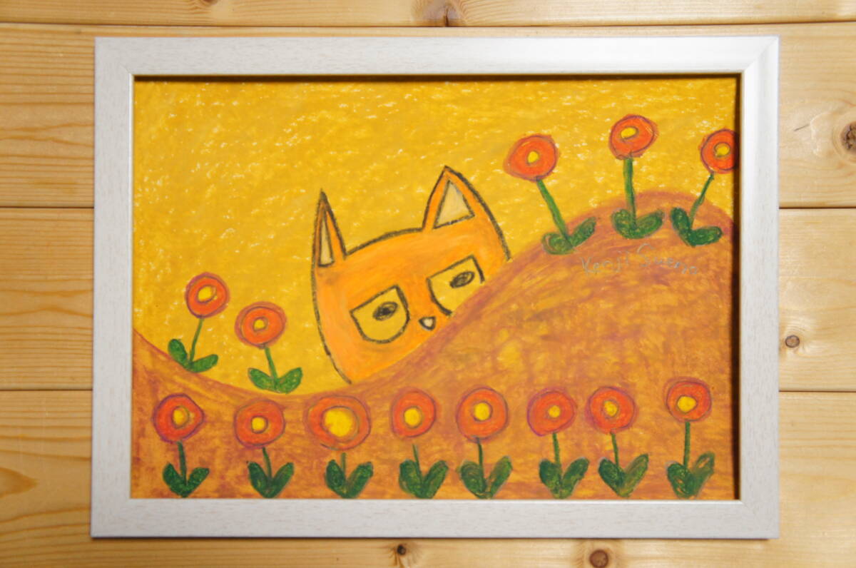 > 【ねこ】手描き 肉筆 クレヨン画 絵画 A4サイズ 762,Crayon painting, oil pastel painting, original art,猫,ネコ