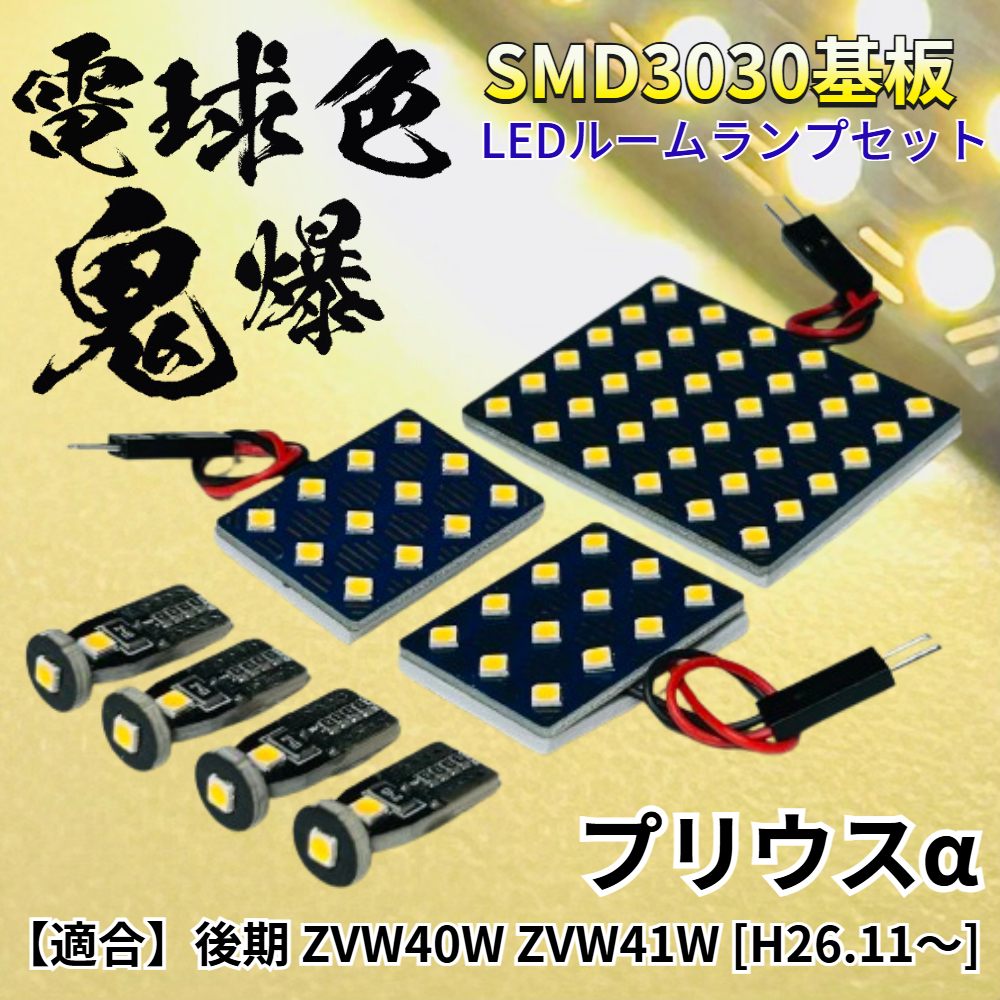 - 【電球色】プリウスα 後期 ZVW40W ZVW41W [H26.11~] 暖色 鬼爆基板 3030SMD LED ルームランプ セット 車内灯 室内灯 パーツ アクセサリ