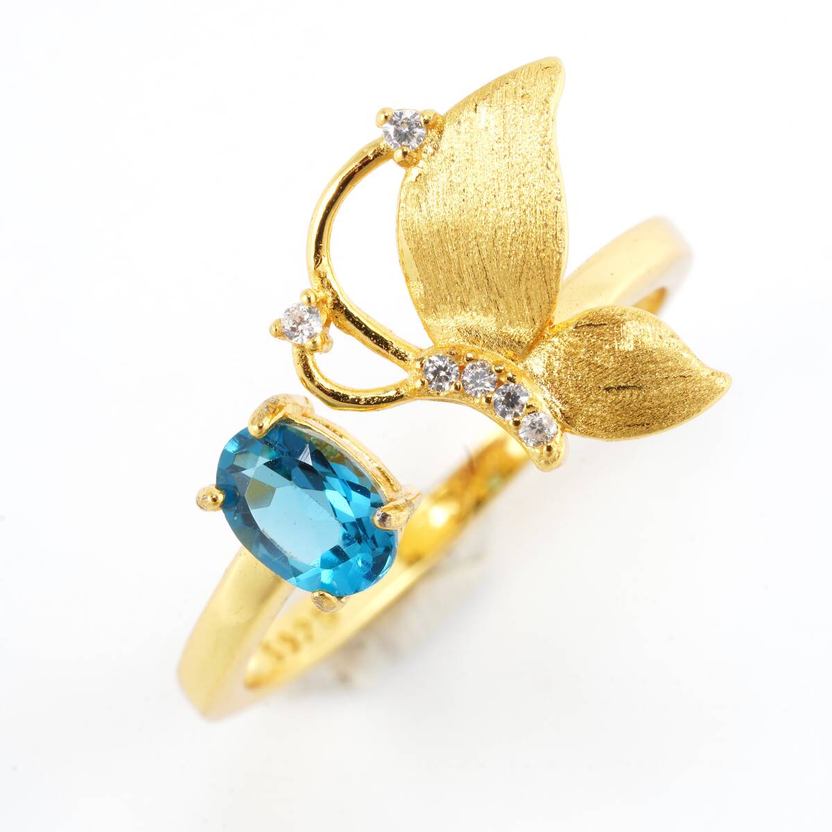 > シルバー925 リング(指輪)ロンドンブルートパーズ フリーサイズ 18KGP No.47 バタフライモチーフ