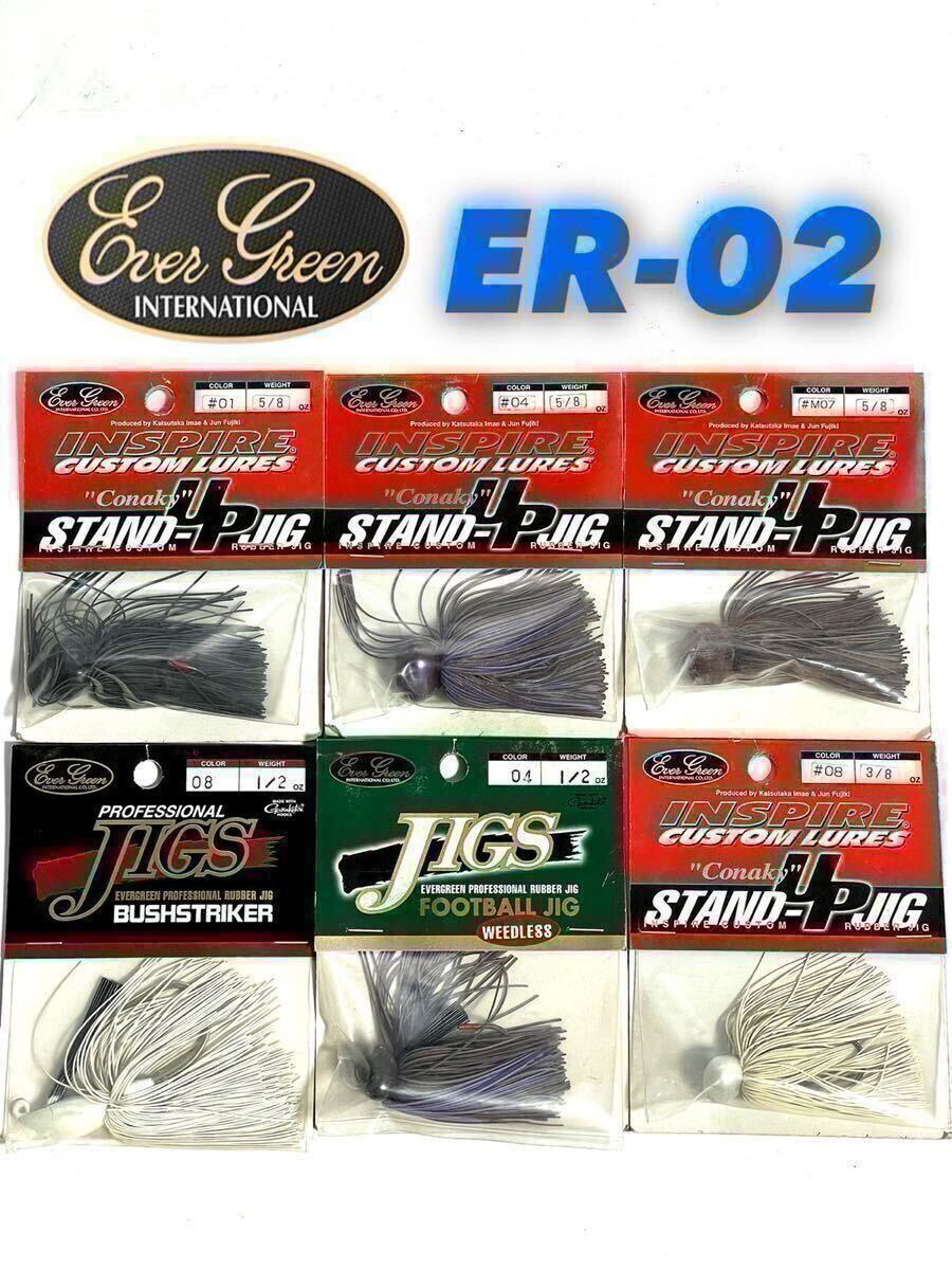 - 【新品未使用品・送料無料】エバーグリーン スタンドアップ・ブッシュストライカー・フットボールジグ5/8・1/2・3/8ozのお得な6個セット!