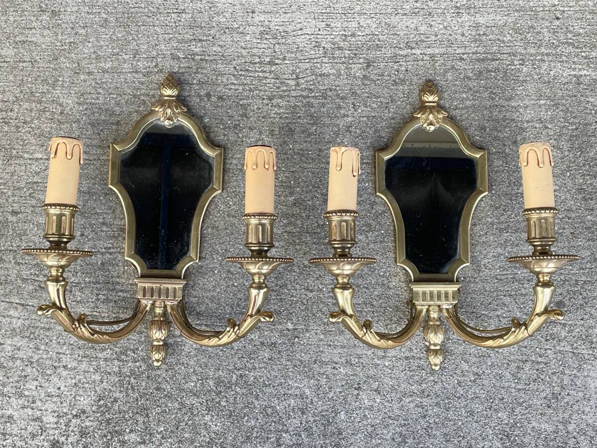 > 8. 2個セット!ミラー フランスアンティーク ランプ ブラケット ブロンズ 2灯 キャンドル ウォール 蚤の市 店舗 什器 カフェ 美容室