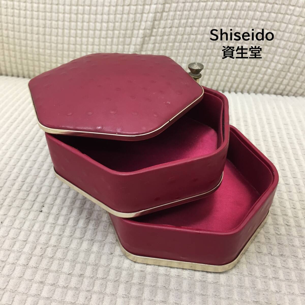 - [雑貨] 入れ物「資生堂」オーストリッチ風 あずき色系 六角形 2段 小物入れ 宝石箱 ジュエリーケースなどにも