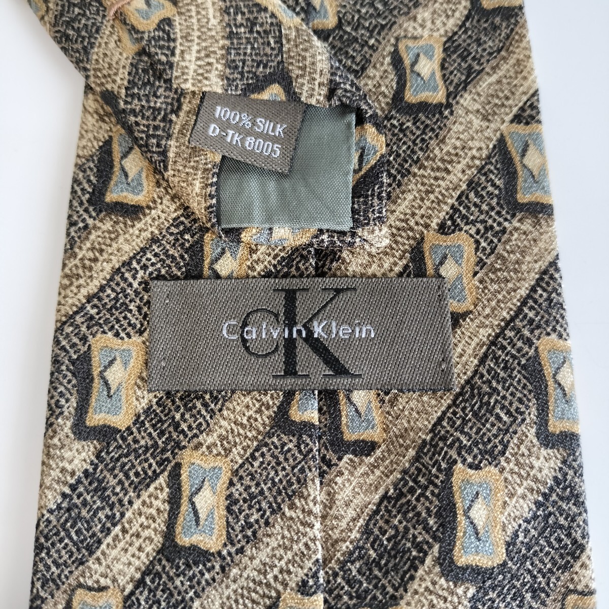 - カルバンクライン(Calvin Klein)茶色スクエアダイヤストライプネクタイ