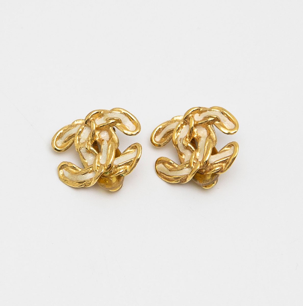 - 中古品 シャネル ココマーク イヤリング ゴールド GP ホワイト ヴィンテージ 02P A18502