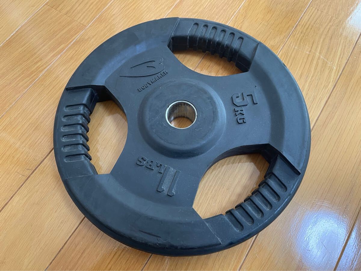 - 即決 BODYMAKER ボディメーカー 5kg ダンベル ラバープレート 28mm トレーニング 筋トレ 旧ロゴ