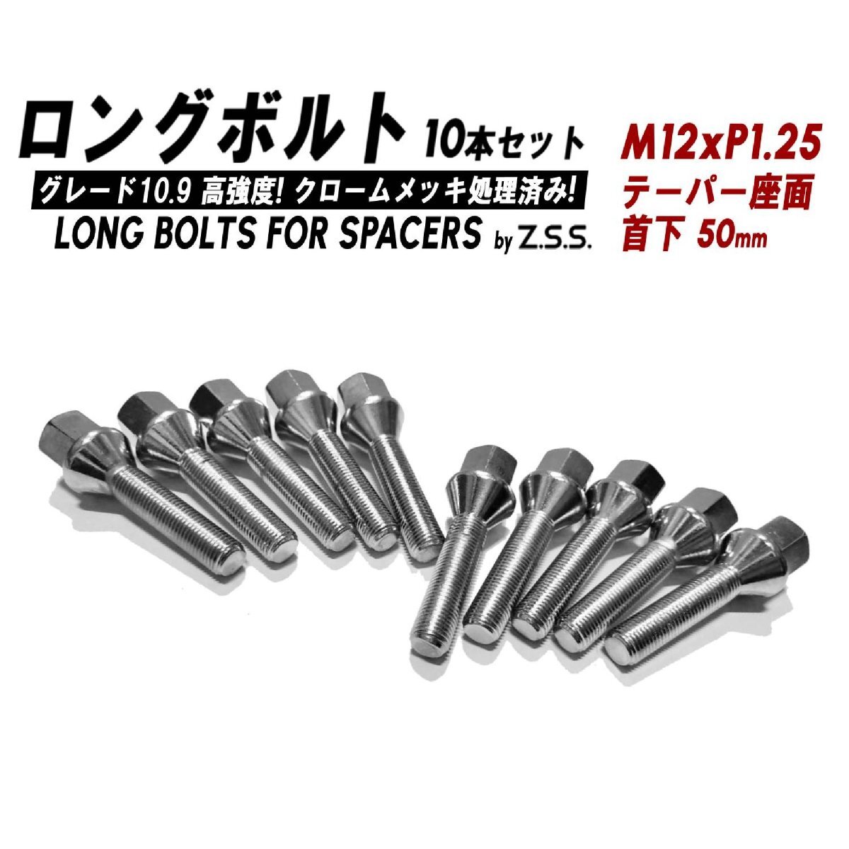 > Z.S.S. AP ロング ボルト 首下 50mm M12xP1.25 クローム HEX17 10本セット スペーサー アバルト Abarth ジープ レネゲード Renegade