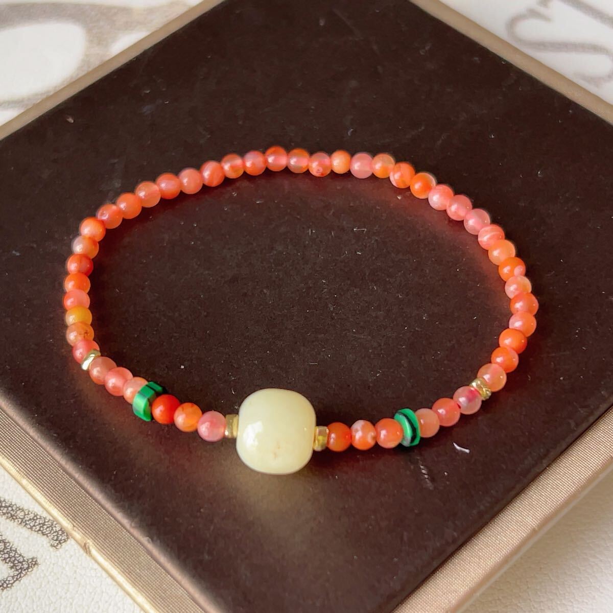 - ◇南紅瑪瑙+和田玉1玉◇ブレスレット◇パワーストーン◇天然石◇巾着袋付き◇プレゼントにも 033B122512