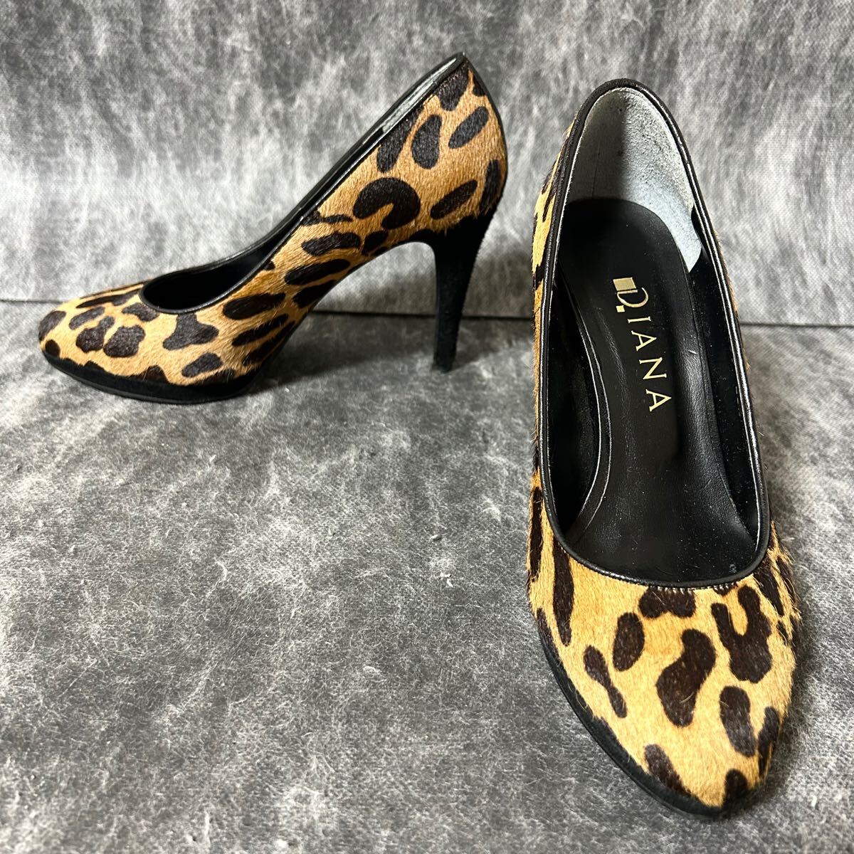 - DIANA ダイアナ ヒールパンプス ハラコ レオパード 22.5cm ブラウン ブラック *K