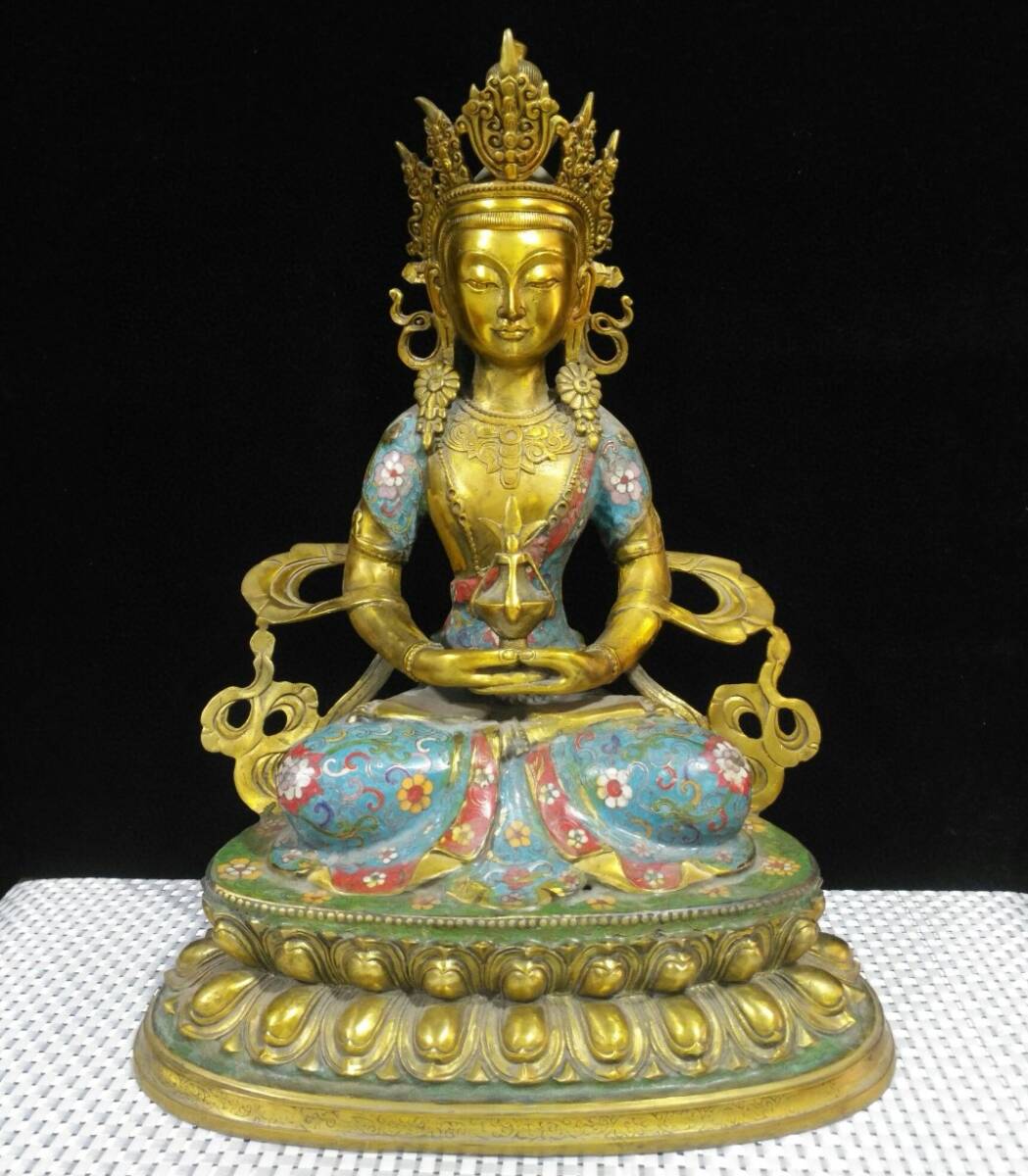 > 旧蔵 清 銅塗金 つねる絲琺瑯 【長寿仏】福寿吉祥 仏像 奉納されていた 供養品 極細工 古美術 古美味 212-27