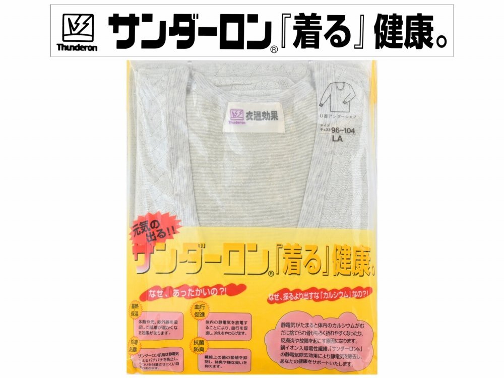 > ■着る健康 サンダーロン■ 紳士用 U首アンダーシャツ インナー 衣温効果 胴イオン入導電性繊維 あったか肌着 san-32 LAサイズ