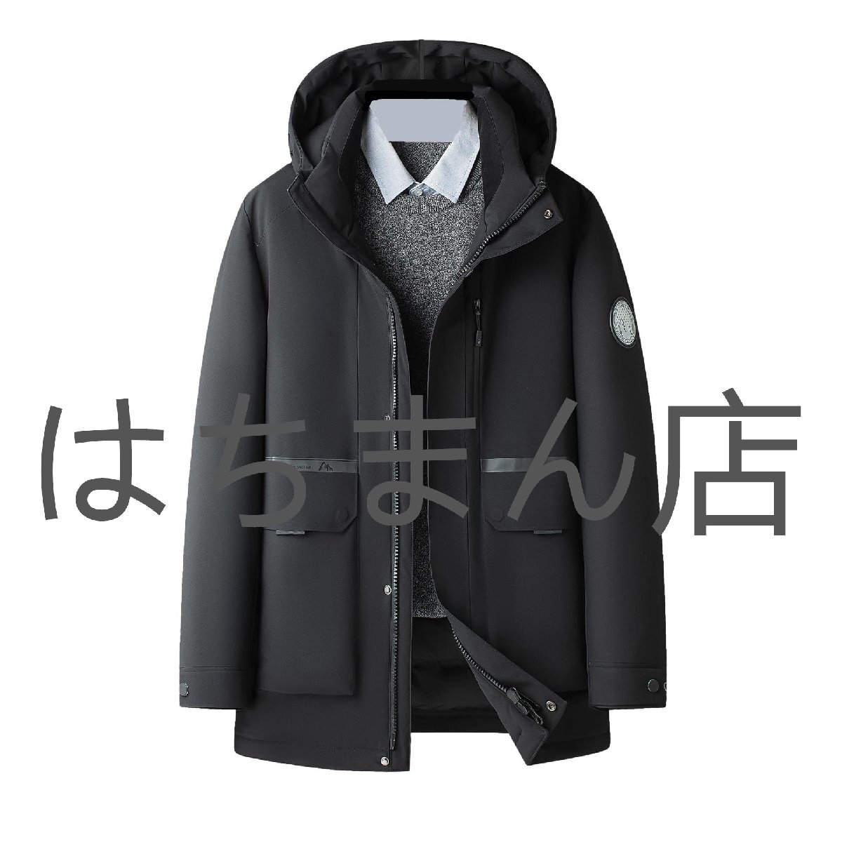 > ダウンジャケット ダウンコート メンズ ガチョウダウン 冬用 ビジネス カジュアル フード付き 厚手 防風 ブラック M-3XL
