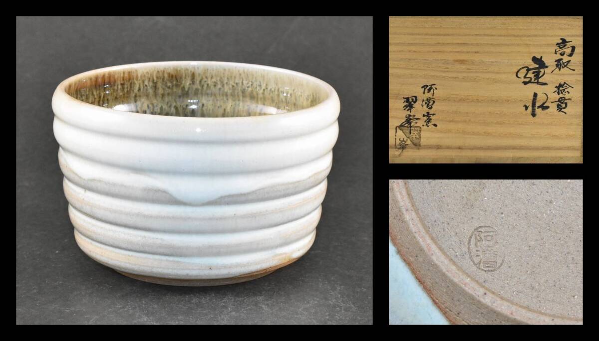 - ▲楠廸庵▲高取捻貫建水 阿漕焼 翠峯作 茶道具