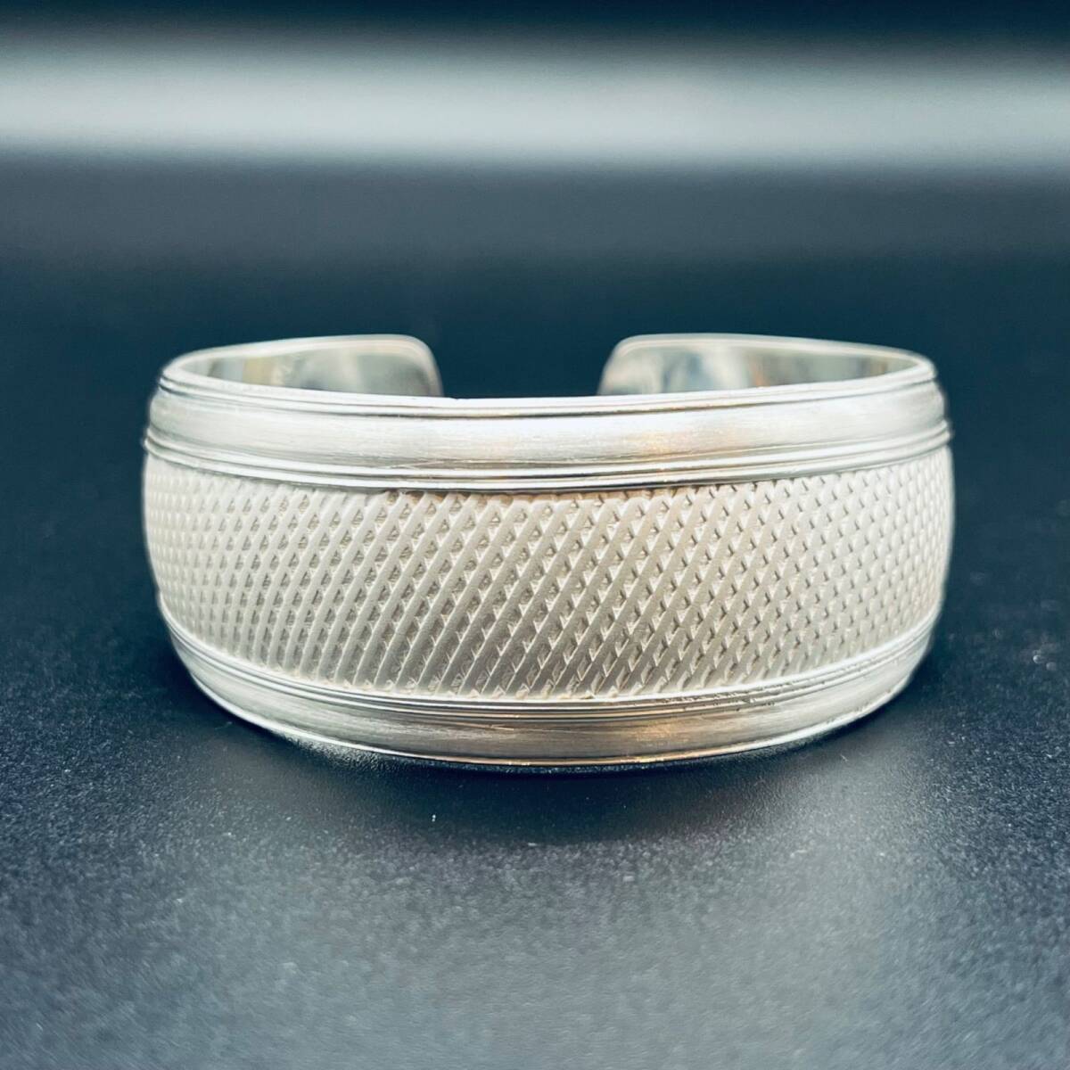 > カレンシルバー ワイドカーブ 白銀 バングル 太め カレン族 銀純度97% ハンドメイド 手作り 95% シルバーアクセサリー 銀 レディース