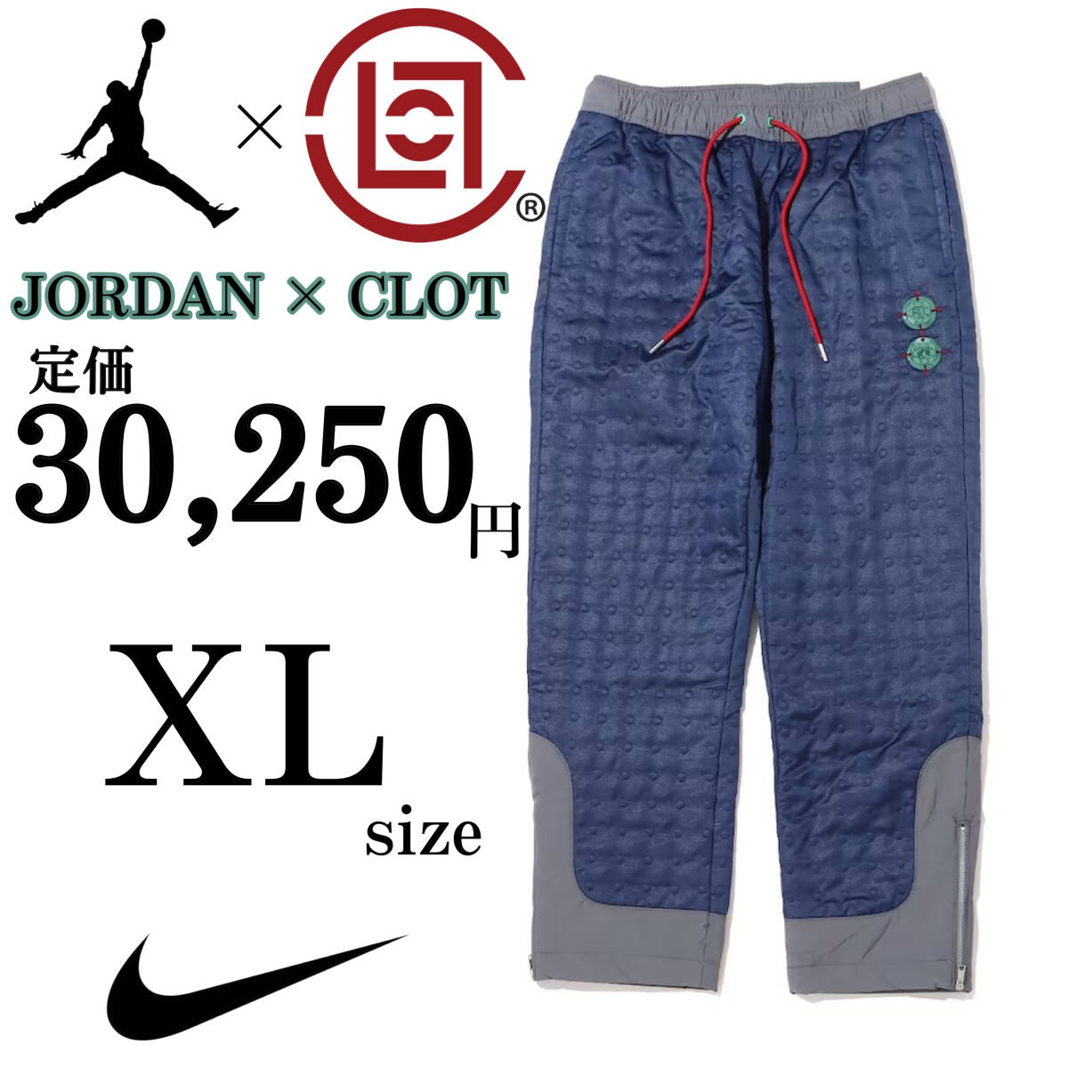 > 新品 XLsize 定価3万 ナイキ ジョーダン × クロット ウーブンパンツ 数量限定 ナイロン ゆったり 撥水 パッチ キルティング 紺 グレー