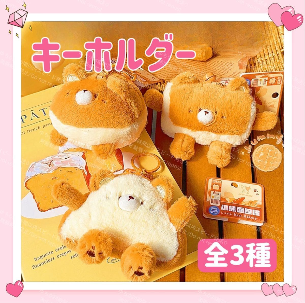 - クマ パン キーホルダー ストラップ チャーム バッグチャーム キーリング ふわふわ くま 可愛い