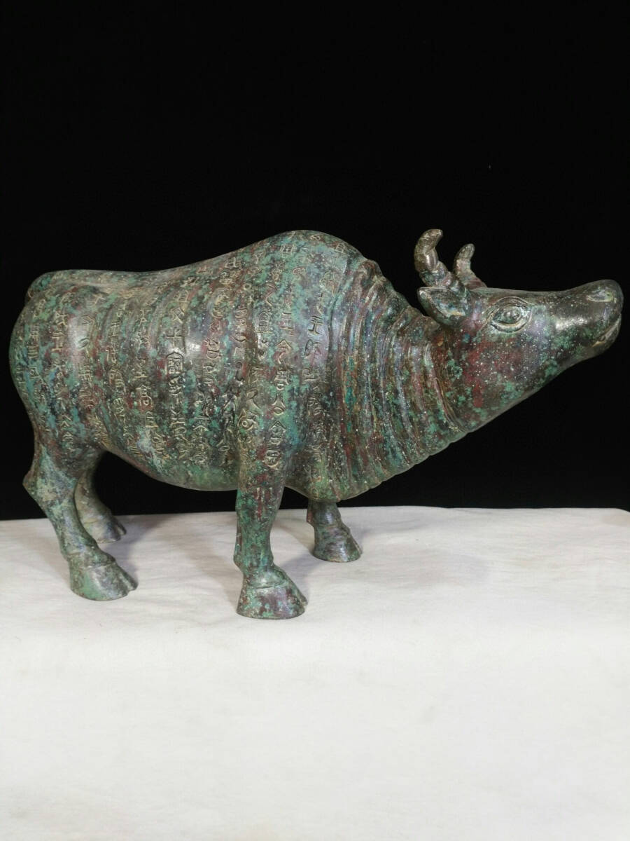 - 【超珍館蔵】商周 青銅製 銘文牛 置物 古賞物 古美術品 稀少珍蔵品