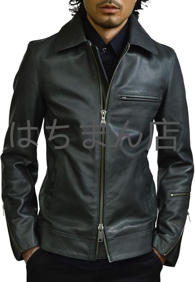 - ライダースジャケット 革ジャン メンズ 本革 レザージャケット レザーライダースジャケット シングル ライダース 革 ブラックグレー S-3XL