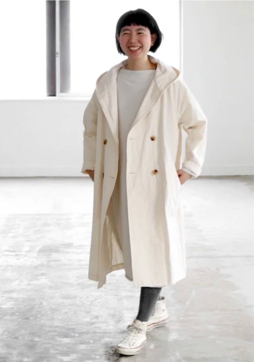 > 新品 CLASKA HAU ハウ ★ 上質 フード付き コットン キャンバス コート アイボリー ロングコート フリー スプリングコート