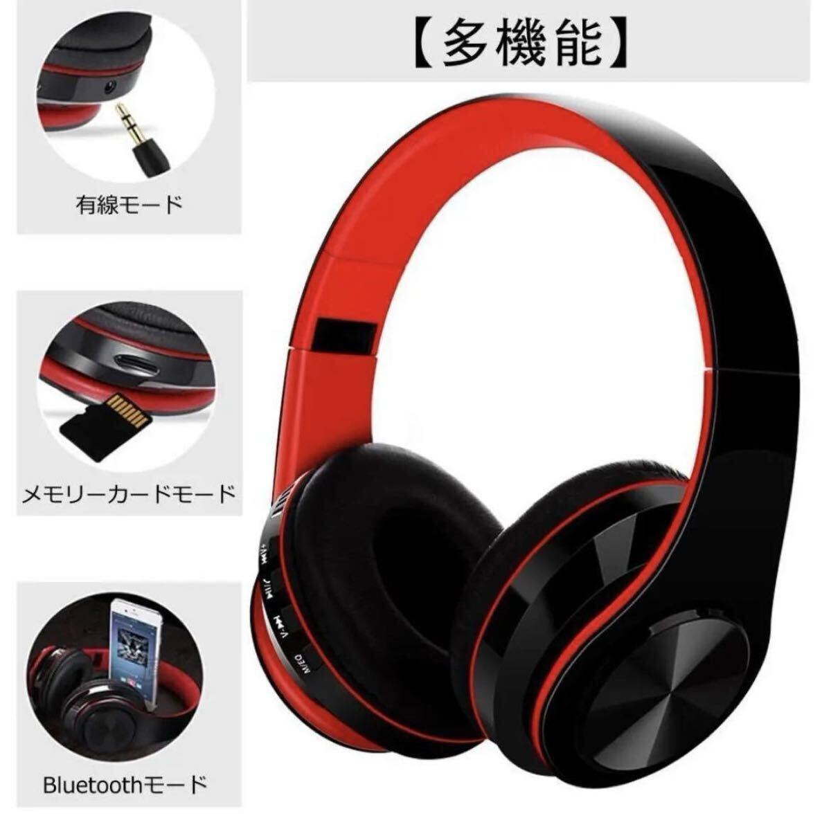 - ワイヤレス ヘッドフォン ハンズフリー 通話 ブルートゥース 無線 有線 レッド