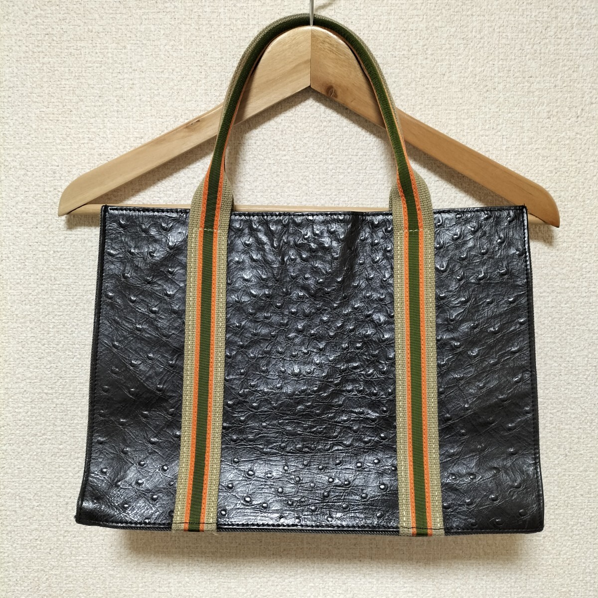 > ☆TAMBU タンブゥ トートバッグ ブラック 黒系 オーストリッチ 型押し レザー 本革 鞄 ブランドバック 大西康子 ビームス アローズ USED