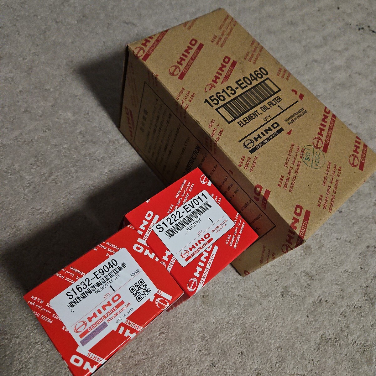 - 日野レンジャー J05Eエンジン用 消耗部品セット オイルフィルター、PCVブローバイガスフィルター、サーモスタット、セット