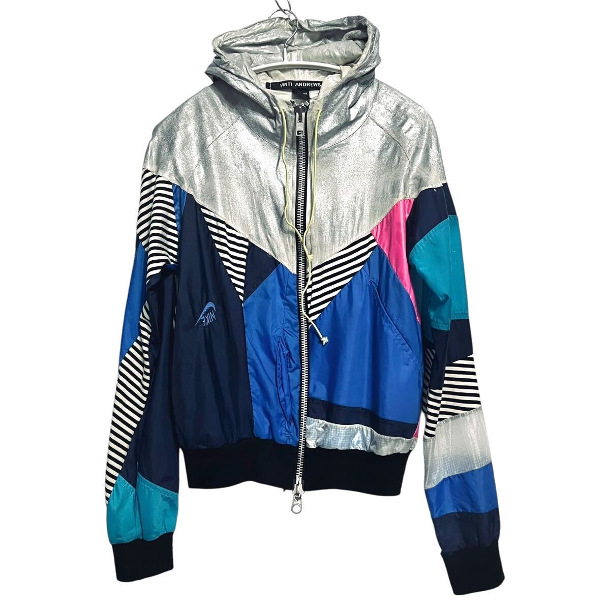 > VINTI ANDREWS NIKEリメイク ナイロンパーカー M シルバー×マルチ ヴィンティアンドリュース MIDWEST TUNE Y2K ジップパーカー 短丈