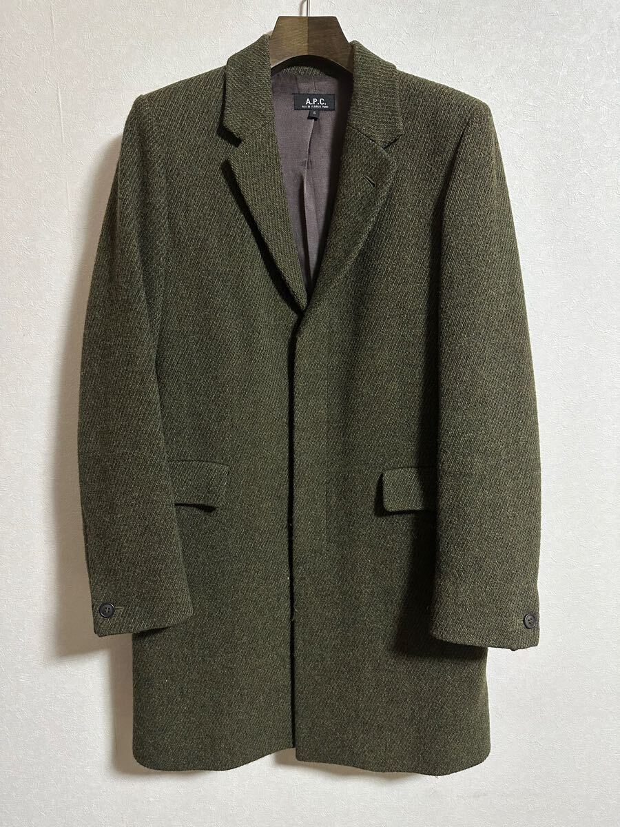 > APC アーペーセー ツイード ウール チェスター コート S フランス製 tweed wool chester coat france
