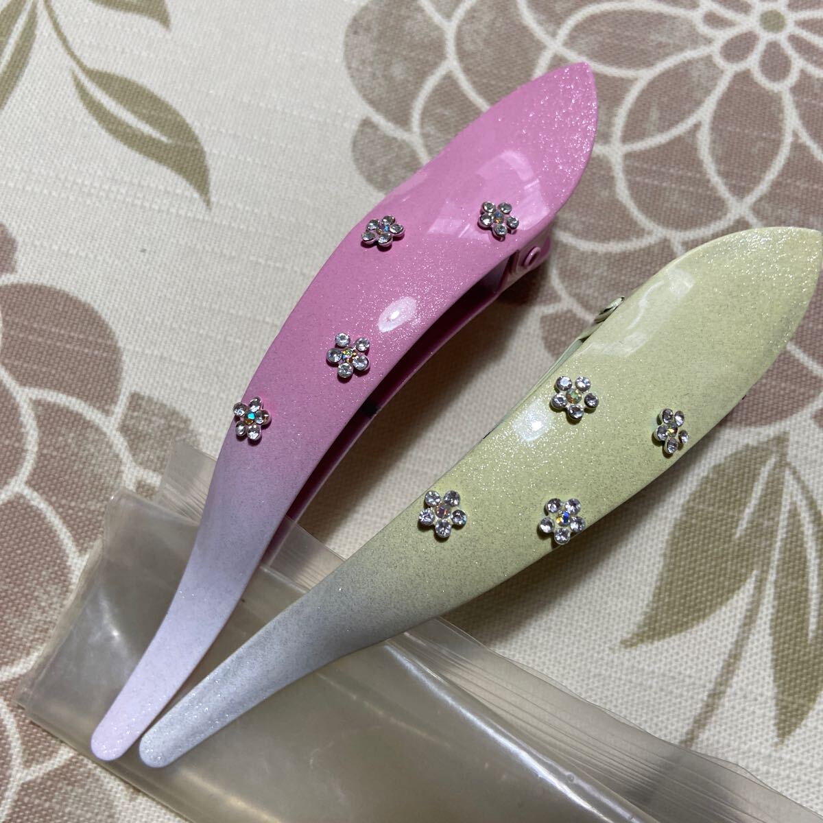 - コンコルド クチバシクリップ ピンク イエロー 花 ラインストーン