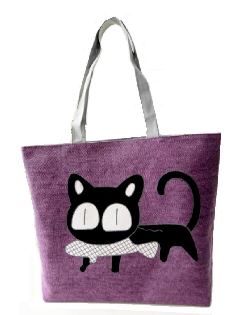 - お魚 と どら猫 トート バッグ パープル カジュアル 帆布 ファスナー付き