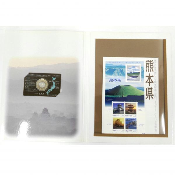 - 送料無料 熊本県 地方自治法施行六十周年記念 五百円バイカラー・クラッドプルーフ 切手付き Bセット②