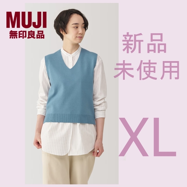 - 新品 未使用 即決 送料無料 無印良品 洗えるミラノリブ編みベスト Vネック ニット ベスト XL サックスブルー 大きいサイズ LL