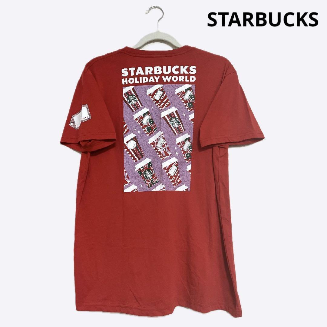- STARBUCKS Tシャツ L HOLIDAY WORLD バックプリント