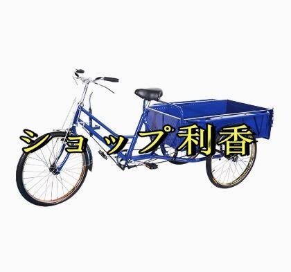 - 前輪24インチ・後輪20インチ 大人用貨物三輪車 載荷重80kg ダブルブレーキ 三輪車 大容量 後カゴ付き ブルー